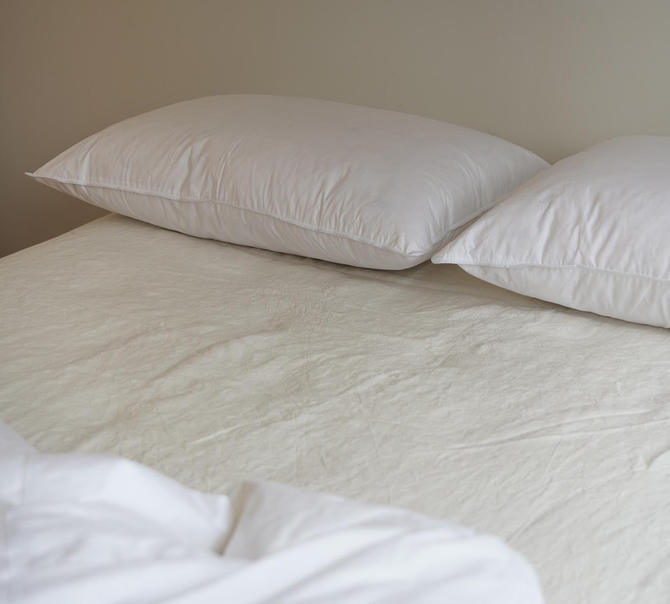 The heirloom quality duck and down feather pillow inserts are made with smooth cotton fabric, providing both resilient support and variety of firmness for a comfortable sleep experience.