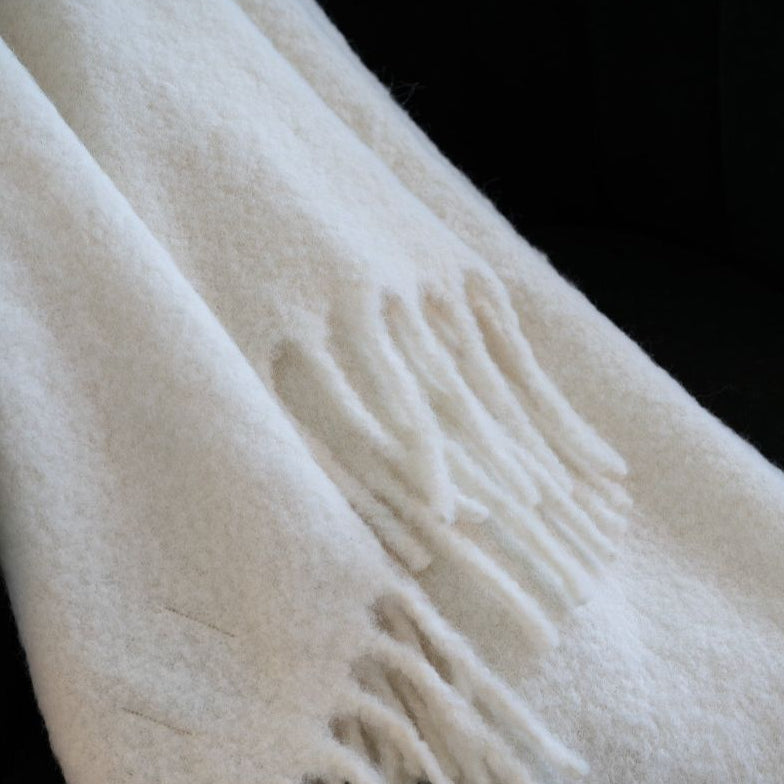 Soft, warm, and timeless, the Aria Wool Throw is brushed to a cloud-like softness and finished with long fringes for a minimal, elegant touch. Woven from 89% alpaca and 11% nylon, it provides natural warmth, lightness, and durability. Sized at 70 × 50" (180 × 130 cm), it’s perfect for draping over your sofa, bed, or shoulders.