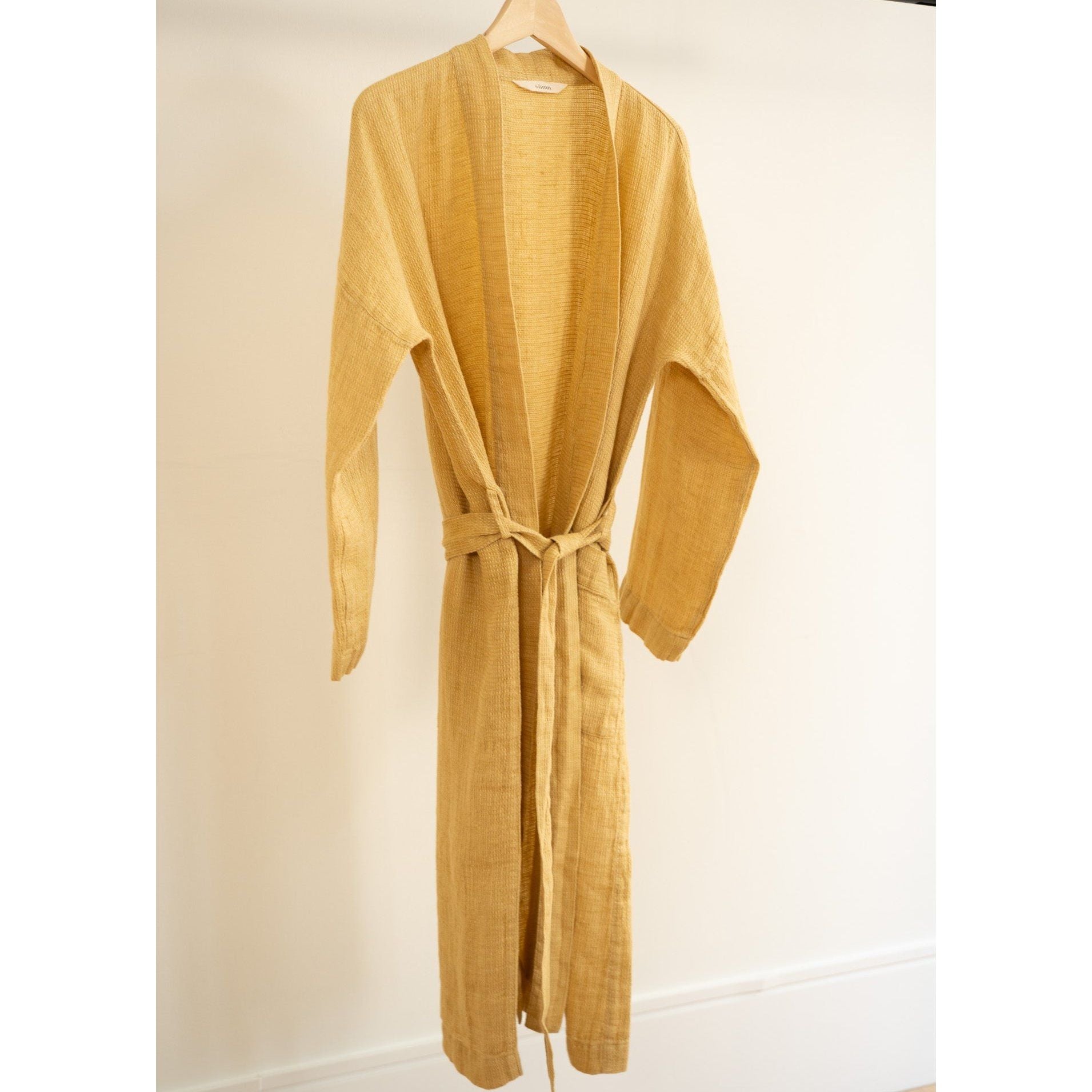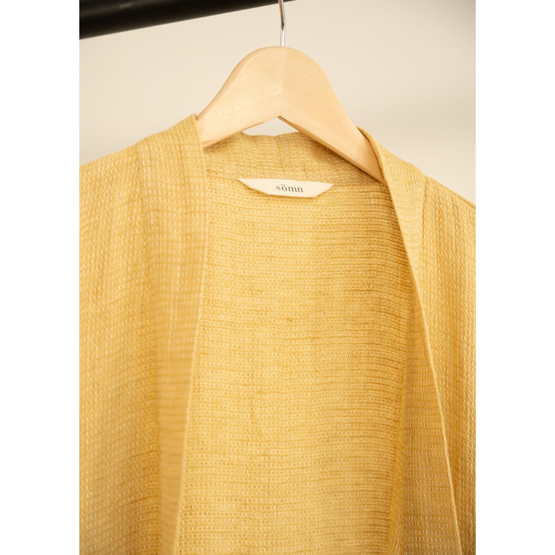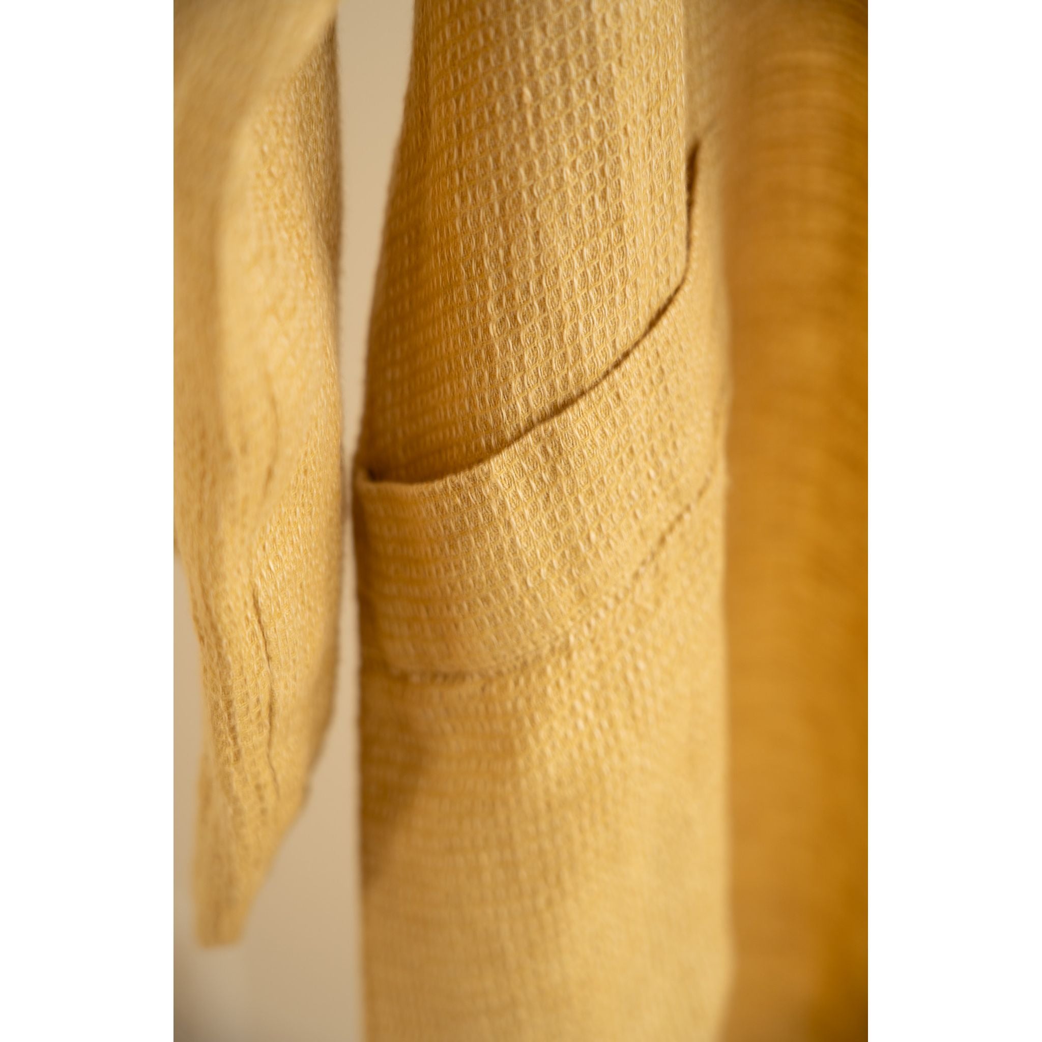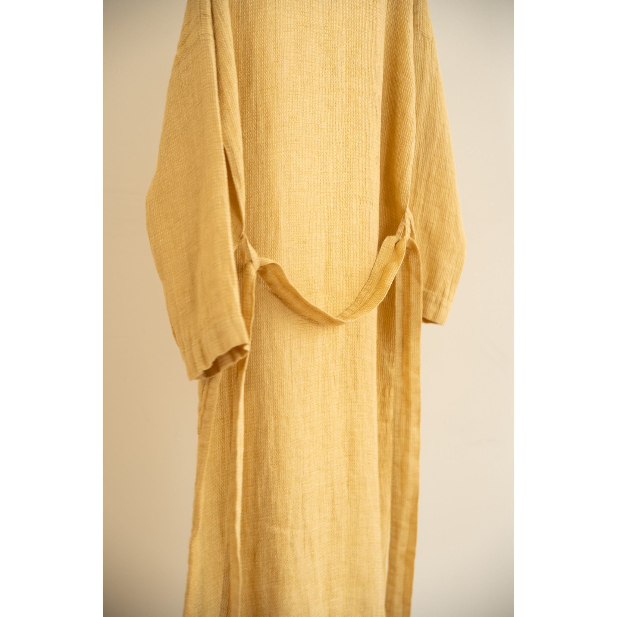 Lovingly crafted with a sumptuous waffle fabric, this linen bathrobe provides a comfortable and breathable choice for after-shower or relaxation moments. Its exquisite solid hues elevate your at-home wardrobe, while the lightweight material allows for year-round loungewear. The open front design and flexible integrated loop ensure effortless movement and ease of wear.